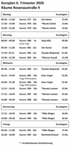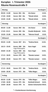Kursplan Unsere Kurse finden in unseren Räumlichkeiten im Rosenauviertel:Rosenaustraße 9, 90429 Nürnberg statt.